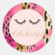 Eyelashes Girly Pink Glam Black Gold Leopard Classic Round Sticker