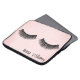 Pair of closed eyelashes on pink terrazzo pattern with a personal name.