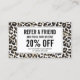 Coordinates with the Eyelashes with Leopard Print Business Card Template by 1201AM. Update the promotion text for your desired offering. Generate more sales and visits by encouraging your customers to refer their friends for a discounted service or free product. Great for lash extension salons, lash bars, makeup artists and more. Art and design © 1201AM Design Studio | www.1201am.com