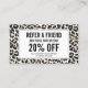 Coordinates with the Eyelashes with Leopard Print Business Card Template by 1201AM. Update the promotion text for your desired offering. Generate more sales and visits by encouraging your customers to refer their friends for a discounted service or free product. Great for lash extension salons, lash bars, makeup artists and more. Art and design © 1201AM Design Studio | www.1201am.com