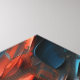 A vibrant painting captures the intense gaze of an owl with a rich palette of reds, oranges, and blues, creating a mesmerising effect that draws the viewer in.