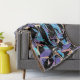 A quality printed throw has its advantages. This is a much finer weave throw than its loopier cousins, and though lighter, it is worth the investment for custom room accessorizing. The back is much prettier than the typical brown, and the fringe on the long sides very vivid, the selvage nicely done. Before photographing, I washed the throw in cold water, delicate, with a thicker woven throw the same size. On tumble dry low, this throw was dry in half the time as the other. This is a very practical quality if you use throws for furniture covers or to wrap up in frequently. The sleekness of the fabric makes it a great layer for accenting or protecting without the feeling of sitting on too much stuff. Perfect for napping or when you feel a light chill coming on. The color printing is beautiful and on this fabric, matched the design and color of my Photoshop image. This is an advantage for blending room fabrics and colors. The fringe on the short sides prints the colors from the design image and therefore varies from the side fringe. I streaked a white fractal line through the plaid pattern to give the illusion of weaving. This printed as crisp as an illusory thread, and put some white in the short side fringe, showing another advantage of print vs loomed- for artistic purposes, line lines, detail, and color integrity can be planned and preserved. My loomed throws have color limitations and more of a needlepoint texture. Print throws reproduce an exact image. The throw felt a little stiff straight out of the package, but this went away in the first delicate wash. Of course I searched the wash water for ink or bleeding and there was none.