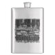 The product is a good size and came exactly as it was pictured. The lid is not attached to the flask, which could be dangerous on drunken nights... The print came out surprisingly well and looks very sharp. Would definitely recommend.