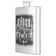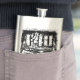 The product is a good size and came exactly as it was pictured.  The lid is not attached to the flask, which could be dangerous on drunken nights... The print came out surprisingly well and looks very sharp.  Would definitely recommend.