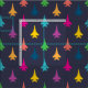A pattern of pretty rainbow coloured strike eagles on dark navy blue are a cute and fun way to include fighter jet aeroplanes into your craft projects.