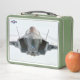 This is a standard metal lunchbox that appears to work just fine. We designed this box ourselves with an uploaded photo and custom text on the front and back. It looks absolutely beautiful except the front of the lunchbox is not centered like it shows in the photo. The print borders don't align with the inset flat part of the box where the preview photo online showed it perfectly centered in there. The back looks nice and centered though.