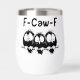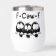 A humorous black-and-white graphic design showcases three black bird silhouettes perched on a wire, each with exaggerated big eyes. The handwritten black text humorously reads: "F-Caw-F." This quirky design is available on various products, making it a perfect gift for bird enthusiasts and fans of sarcastic humor alike.