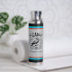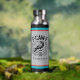 This monogrammed water bottle features a funny raven, or some people might think crow, that has had it with the world. He's telling everyone to F-CAW-F, to essentially go away and leave him alone. This classic crow is surrounded with a wreath of leaves and flowers. If you like dark humor, or are an introvert who likes their alone time without being bothered, this dark humor bird might send the right message or make your friends laugh. The crow and text are in black against a light gray background with black, turquoise, and deep orange trim at the top and bottom of the design.