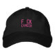 hat embroidered with F CK CANCER in pink, with the U in black.