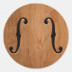 A pair of f-holes in t-shirts and sweats, and in a medium tone faux wood grain on cards and gift swag. Realistique!