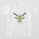 The t-shirt feels and looks great quality, a good thick cotton. It will be a little big for my son, but that means he will be able to wear it and not out grow it too soon. The print was as described on the order when personalised. True size, shape and colour T-shirt- thanks.