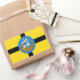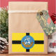 Sticker with a design with the flag of Wellington City, New Zealand. A yellow flag with a black cross and the seal of the city with an image of a ship in the centre