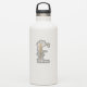 Letter F monogram floral. Letter F in golden brown texture accented with green watercolor compound leaves, flower blossoms and melted gold splashes. Personalised with name in matching font.