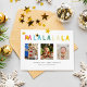 "Fa la la la la" in cute colourful pastel font, features 3 photo collage Christmas magnetic card.