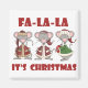 Christmas T-shirts, mugs, cards, stickers, tote bags, magnets, and other Christmas holiday clothing and gift items featuring three cute Christmas mice and text that reads Fa La La It's Christmas.