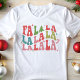 Spread the holiday cheer with this vibrant and fun "Fa La La" Christmas shirt! Featuring bold, multi-coloured lettering with festive accents like stars, a Christmas tree, and a candy cane, this design is perfect for adding some joy to your holiday wardrobe. Whether you're attending a Christmas party or enjoying a cosy night in, this playful shirt is sure to bring smiles and festive vibes. It also makes a great gift for anyone who loves Christmas music and the holiday spirit!
