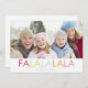 This design features the words "Fa La La La La" in a colourful text on a white background. Personalise it with your photo and greeting.
