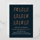 Celebrate the holiday season with an unforgettable party this year, with these LUXURY party invitation featuring "Fa La La" in bold handwritten ROSE GOLD REAL FOIL over a dark blue background