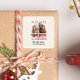 Stand out at this years holiday party with VINTAGE PET STICKER TAG featuring a retro image of a brown Labrador and a Golden Retriever in Santa Hat on a vintage red truck with quote "FA LA LA LA LA LABRADOR".
