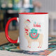 This festive design features a Llama in holiday spirit dressed with Santa hat and red scarf with a gift on his back. the words "Fa La La Llama" are written in modern popular typography. #Christmas #Xmas #llama #holidays #gifts #merry #seasonal #festive #design #style #fashion #coffee #mugs #kitchen #office #work #home #school