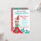 Llama fun Ugly Christmas sweater party invitations with a Llama dressed for the holiday in a tacky santa hat with ribbons and bows around her long neck and an ugly sweater, surrounded by cactus. Matching item on this one! Great for any age!