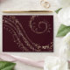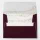 Introducing the "Fa La La Magical Gold Sparkle Christmas Carol Burgundy Envelope," a perfect blend of elegance and festive cheer to enhance your holiday correspondence. Designed to capture the very essence of Christmas joy and celebration. The envelope's rich burgundy colour serves as a stunning backdrop for the intricate design featuring faux gold streamers, confetti, and sparkling snow. These elements are meticulously arranged to mimic the fluidity of music lines, creating an impression of melodies dancing gracefully in the winter breeze. At the heart of this design is the phrase "Fa la la," cleverly interwoven into the musical lines, embodying the lively spirit of Christmas carols. This visual symphony brings to life the festive songs that fill the air during the holiday season, making it an ideal choice for sending warm wishes to loved ones. Whether you're mailing holiday cards or invitations, this envelope adds a touch of magic and sophistication to your messages, ensuring they are received with the same warmth and joy with which they are sent. Designed by Moodthology Papery