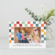 Add some humour and style to your holiday season with this Fa La La Whatever funny Christmas photo card, specially designed for families with older kids. The card features a bold, retro-styled chequered background in warm, muted colours, giving it a vintage yet modern aesthetic. The playful grid of squares adds a nostalgic touch while framing your family photo with a fun, quirky vibe. The cheeky message, "Sleighing it our way, one eye roll at a time!" perfectly complements the cool, laid-back feel, making it ideal for families who enjoy casual humour during the holidays. Personalise the card with your own photo and message to create a unique holiday greeting that will spread smiles and laughter to all.