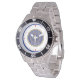 Has heft and feel of expensive stainless steel quartz watches. Good band with safety catch. I removed links, which is easy because engraved arrows show direction to push the linking pins. As always by this seller, the image (a railroad logo) is a perfect reproduction of my emailed image, and is precisely spaced and aligned.