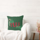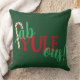 Forest green design with striped candy cane spelling out “Fab-Yule-ous!” in festive fashion on this holiday throw pillow.