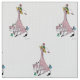 An adorable GIRAFFE is having her spots painted in pink by three tiny mice. This fun and whimsical fabric is perfect for little girls, baby girls...and all female giraffe lovers! The original painting and the fabric design is by Jan Law, international artist.