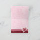 Scrapbook style Valentine's Day greeting card displaying sewn X's and O's, pink ribbon, paper or cloth-like hearts with button and floral patterns inside and out.