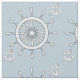 White ship's helm in centre with anchors and ropes in upper right and lower left corners. Medium blue background may be customised.