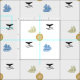 Two sailing ships (one in blue, the other in a grey-green colour), a golden compass and tail flukes of whales, cover this wrap. Great for the veteran or aspiring mariner on your gift list.