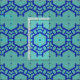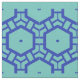 Hexagon pattern is chained together in rows. Dark blue on Light blue.