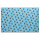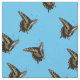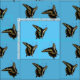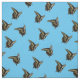 Photographic image of Black and yellow butterfly, replicated at three different angles, then tiled across fabric. Anise Swallowtail (Papilio zelicaon ) Light blue background.