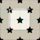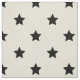 White fabric with black star print.