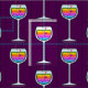 A brightly coloured wine glass filled with a vintage rainbow of vino fun, sparkling out heart bubbles in a contemporary homage to the winery. Perfect party design for any happy hour or cocktail celebration.