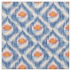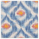 Fabric with vintage blue ikat pattern. Fabric with pattern in Boho style. Abstract peacock eyes pattern