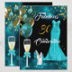 Fabulous 30 Birthday, Teal Blue Dress Gold balloons. High Heel Shoes, Champagne Gold. Elegant Birthday Party. Women's ladies or mens. Elegant Festive Fun and Classy, Any Age Celebrations. Party invites Template for All Occasion Holiday Invitations, New Year's, 21st, 30th, 40th, 50th, 60th, 70th, 80th, 90, 100th. Fabulous product for Women, Girls, Zizzago created this design PLEASE NOTE all flat images! They Do NOT have real Glitter, Diamonds Jewels or real Bows!!