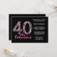 Fabulous 40th Black and Pink Zebra Birthday Invitation