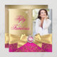 Fabulous 50 Photo Gold Pink Bow 50th Birthday Invitation