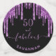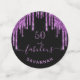A classic black background decorated with dark purple coloured faux glitter drips, paint dripping look. With the text: 50 and fabulous x3 and a photo x3. Personalise and add your own photo, and a name. Purple coloured text. The word Fabulous is written with a modern hand lettered style script with swashes.