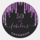 Fabulous birthday black purple glitter sparkle 50 classic round sticker
