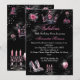 Fabulous birthday Pink Silver Black Tiara High heel Shoes Elegant Candelabra wine glass Black Invitation. Pretty and jewels. Please note: All flat images! They do not have real jewels.