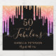 A trendy and elegant 50th (or any age) birthday wine label. A classic black background decorated with rainbow coloured faux gold glitter drips, paint dripping look in purple, pink and rose gold. With the text: 50 and fabulous. Personalise and add a name and a date. Date of birth or the date of the party. Golden text. The word Fabulous is written with a modern hand lettered style script with swashes.