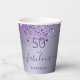 For a glamourous 50 (or any age) Fabulous birthday party.  A faux silver metallic looking background. On the front and the back: Personalise and add a name and age.   Decorated with purple faux glitter dust.