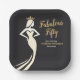 Make a statement with this stylish 50th birthday paper plate! The phrase "Fabulous Fifty" shines in gold script against a dark grey backdrop, creating a modern yet timeless look. A confident woman in a dress and golden tiara adds glamour on the left, while the right side holds all the party details in a clean sans serif layout.