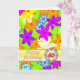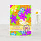 Fabulous 'op art' flowers in bright colours.A vibrant card that says 'HAPPY!' The multicolored flowers are tumbled across a green background.See the whole range cards in my store. All artwork copyright by Norma Cornes.
