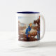 A two tone Coffee Mug featuring the Illustration and Poem "Face Off"