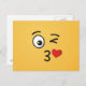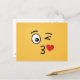 A kissing emoji. One eye is open, the other is winking. A heart is shown leaving the kissing mouth.